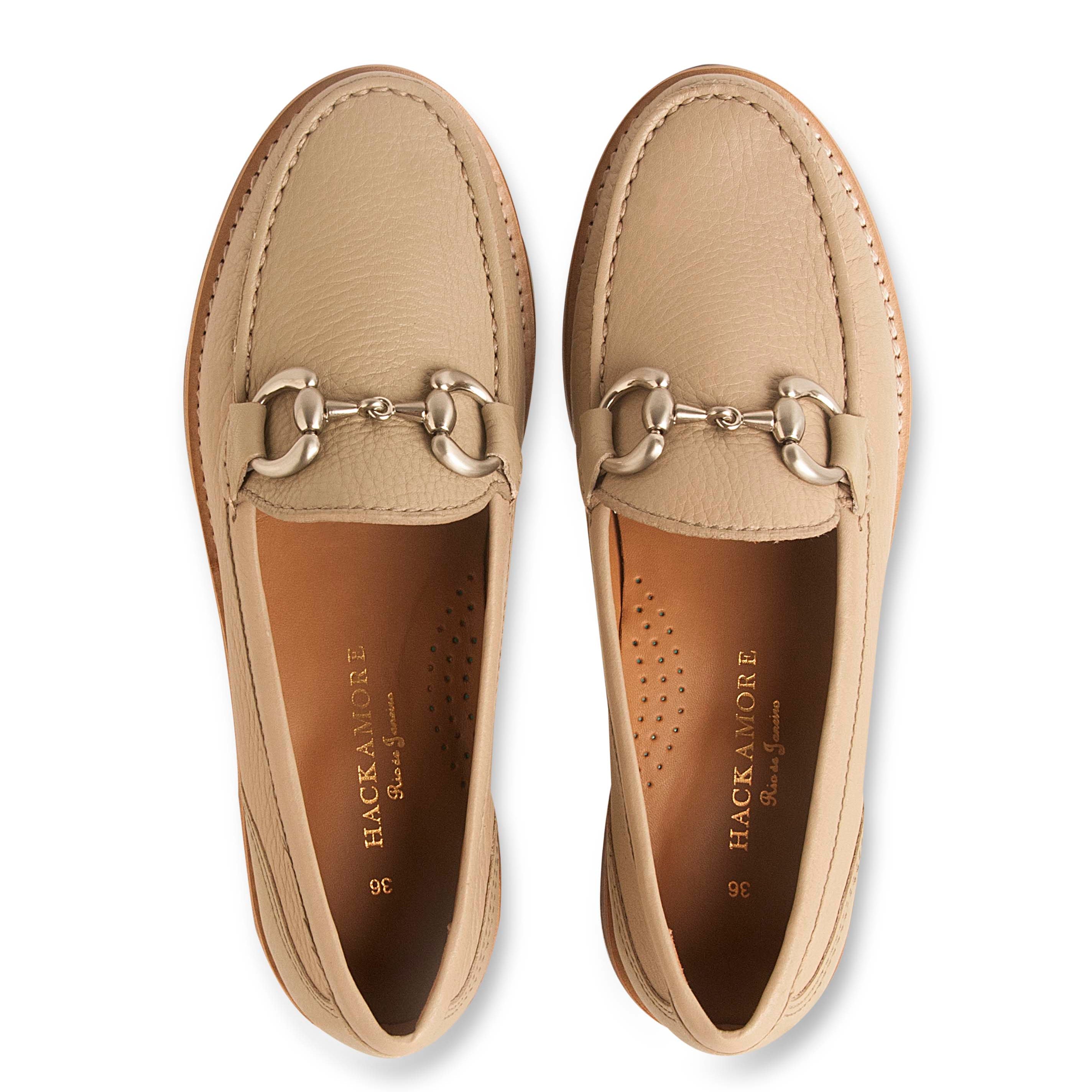 · Mocassim feminino confeccionado em couro floater no tom cotton