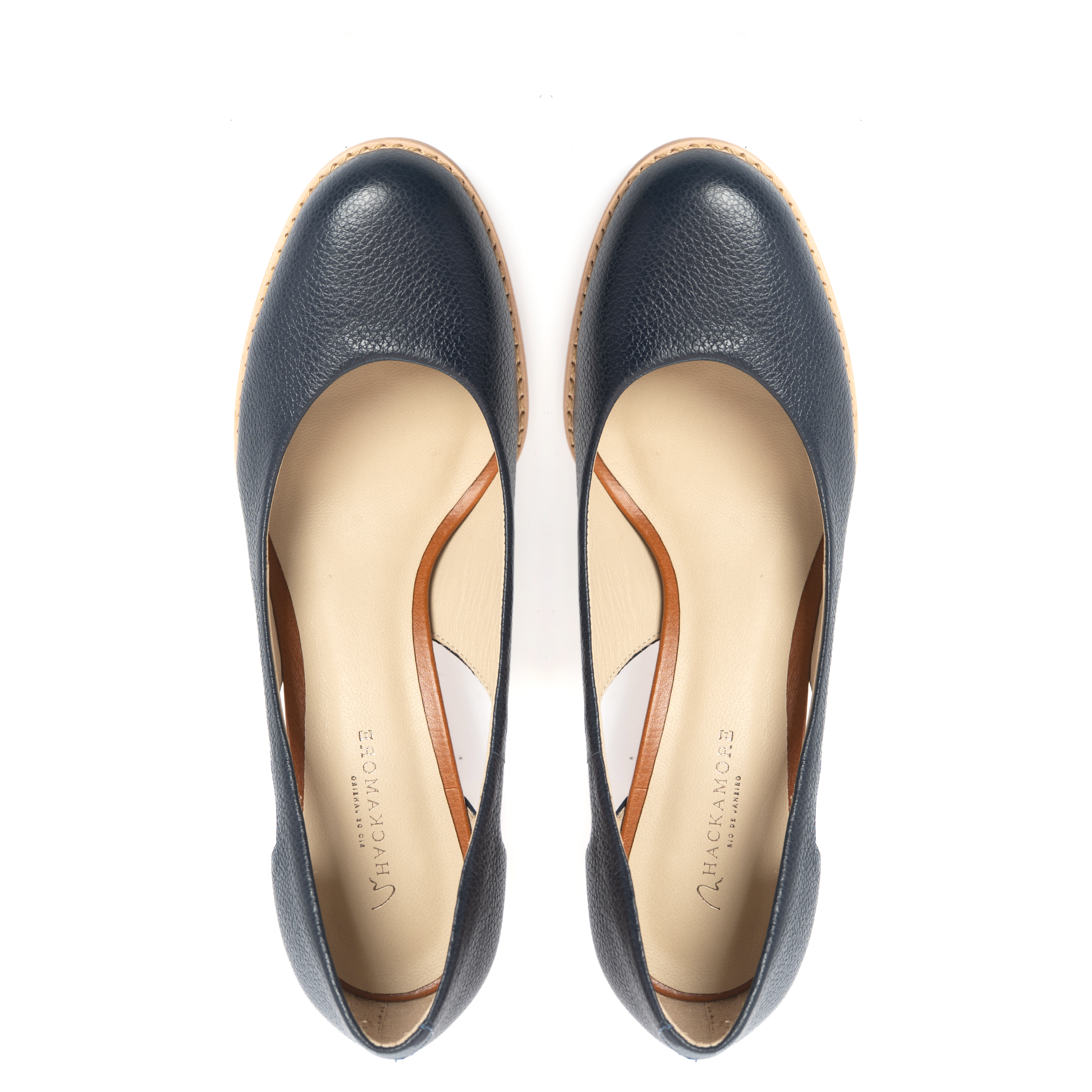• Scarpin confeccionado em couro floater no tom marinho, bico amendoado