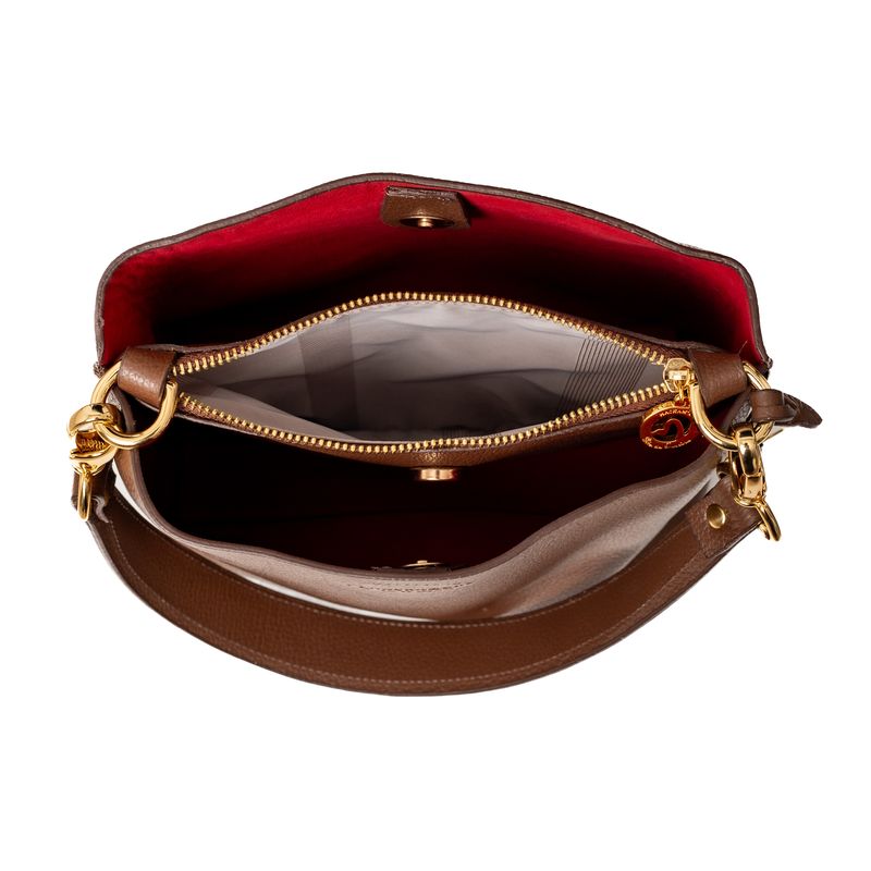 A Bolsa Elza tem o tamanho perfeito para te acompanhar a todos lugares.Seu forro em couro no tom vermelho contrasta com o tom avelã da parte externa valorizando cada detalhe; um toque de ousadia com muito charme.A versatilidade de suas duas alças permite que sejam usadas de diferentes formas: na mão, no ombro ou como crossbody que cruza no corpo.Aposte na Bolsa Elza para compor seus looks e escolha a forma que melhor combina com seu estilo.