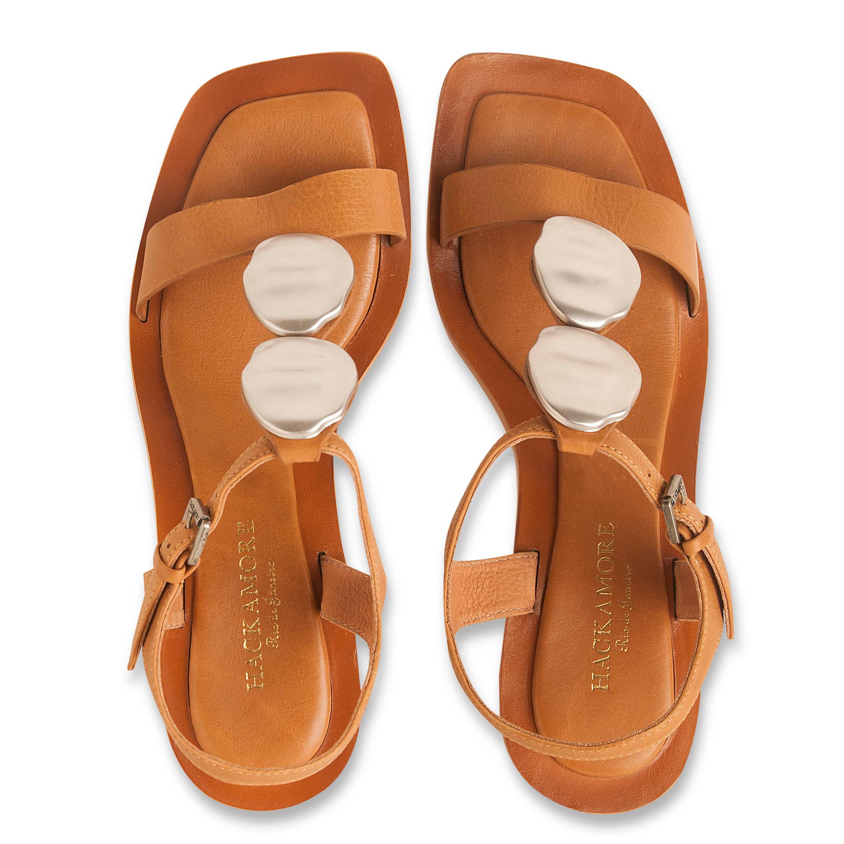 - Confeccionada em couro floater no tom natural e bico quadrado